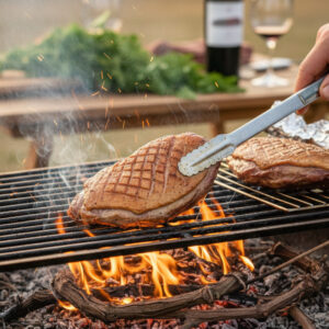 Le magret de canard : Le gras du canard s’enflamme rapidement, créant une croûte caramélisée et fumée incomparable.