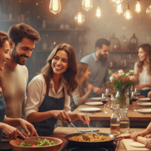 Les repas de famille et les grandes tablées lors des fêtes, des dimanches ou des retrouvailles, où chacun met la main à la pâte.