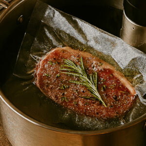 Principe : L’aliment est scellé sous vide dans un sachet, puis plongé dans un bain-marie maintenu à une température très précise par un thermoplongeur ou un bain-marie de laboratoire.