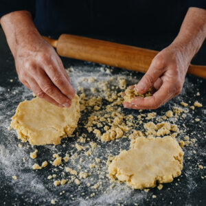 L’abaissage : Étalez toujours du centre vers l’extérieur. Tournez la pâte d’un quart de tour à chaque passage pour vérifier qu’elle ne colle pas et garder une épaisseur régulière (environ 3 mm).