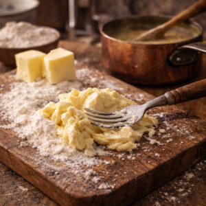 Le beurre (L’isolant) : Il doit être ferme et froid (environ 8°C). Le beurre ne doit pas s’amalgamer à la farine pour former une pommade, mais rester en micro-fragments. Lors du sablage, le gras enrobe les grains d’amidon, créant une barrière hydrophobe qui limite l’action de l’eau sur le gluten.