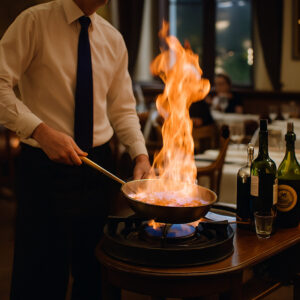 C’est cette caramélisation qui confère au plat une saveur unique, douce et torréfiée (la fameuse « note adulte »), rehaussée par l’arôme de l’alcool (Cognac, Grand Marnier, Rhum, etc.) sans l’agressivité de l’alcool pur.