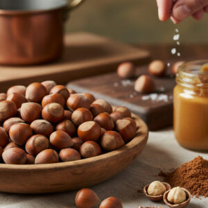 L’ingrédient phare qui donne au Paris-Brest son identité olfactive et gustative est le praliné, un mélange de noisettes et d’amandes caramélisées et broyées.