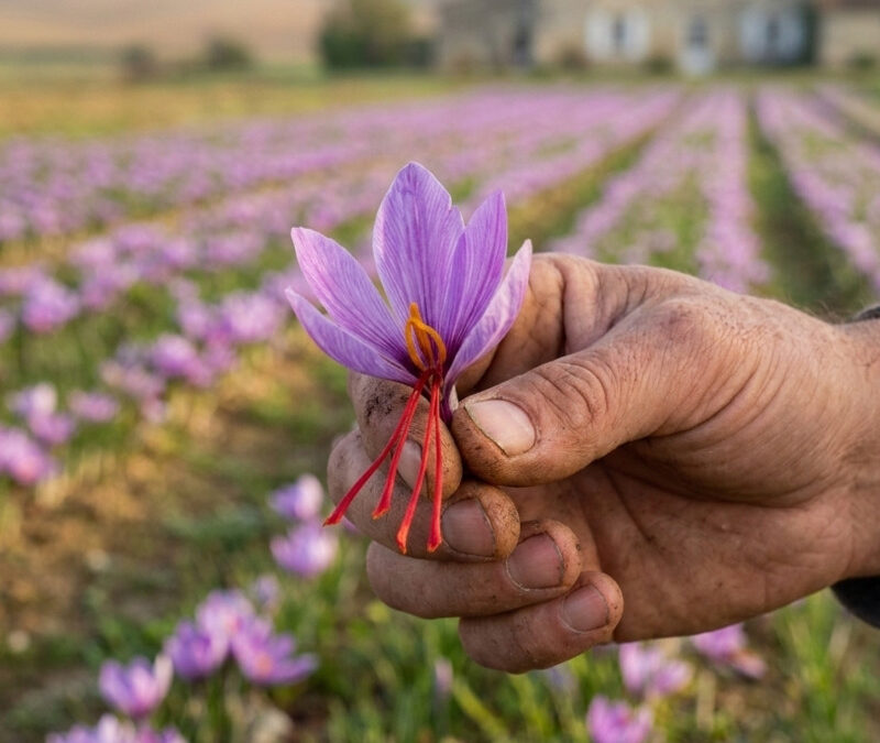 Le safran est l’épice de la patience et de l’abnégation. Pour obtenir 1 gramme de safran sec, il faut récolter environ 150 à 200 fleurs à la main.