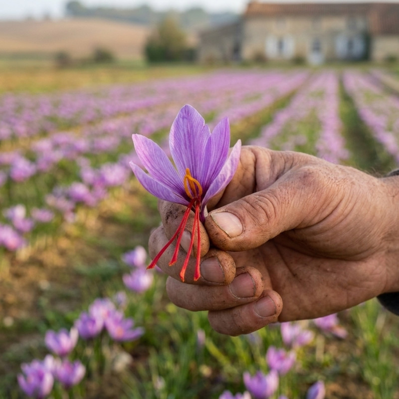 L’introduction du safran en France remonte aux Croisades, mais c’est au Moyen Âge que la culture s’implante durablement en Angoumois. Favorisé par des sols calcaires et un climat tempéré, le safran charentais devient rapidement une référence de qualité.