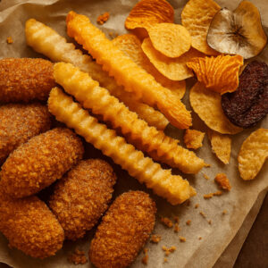 L’aubergine : Tranchée en rondelles, elle apporte une texture charnue, presque crémeuse après friture.