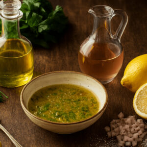 Bretagne : Vinaigrette au cidre avec une touche de crème fraîche pour les salades à feuilles tendres.