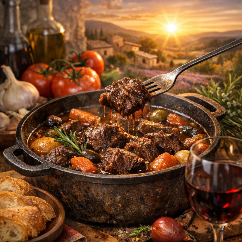 Véritable pilier de la cuisine ménagère du midi, ce ragoût de bœuf longuement mijoté est bien plus qu’une simple recette : c’est un rituel culinaire où le temps et la qualité des produits font tout le travail.