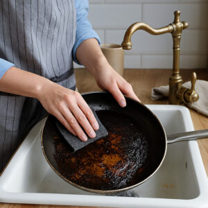 Le phénomène de collage se produit lorsque les protéines de l’aliment (viande, œuf, poisson) ou les sucres (caramélisation) entrent en contact direct avec la surface du métal avant qu’une barrière protectrice ne puisse se former.