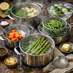Pourquoi ça marche ? Le froid intense fige instantanément la chlorophylle et stoppe l’activité enzymatique. C’est ce qu’on appelle fixer le vert. Sans cette étape, la chaleur résiduelle interne continue de cuire le légume et de dégrader la couleur, même hors de l’eau.