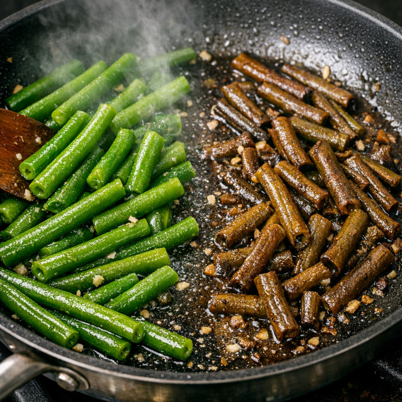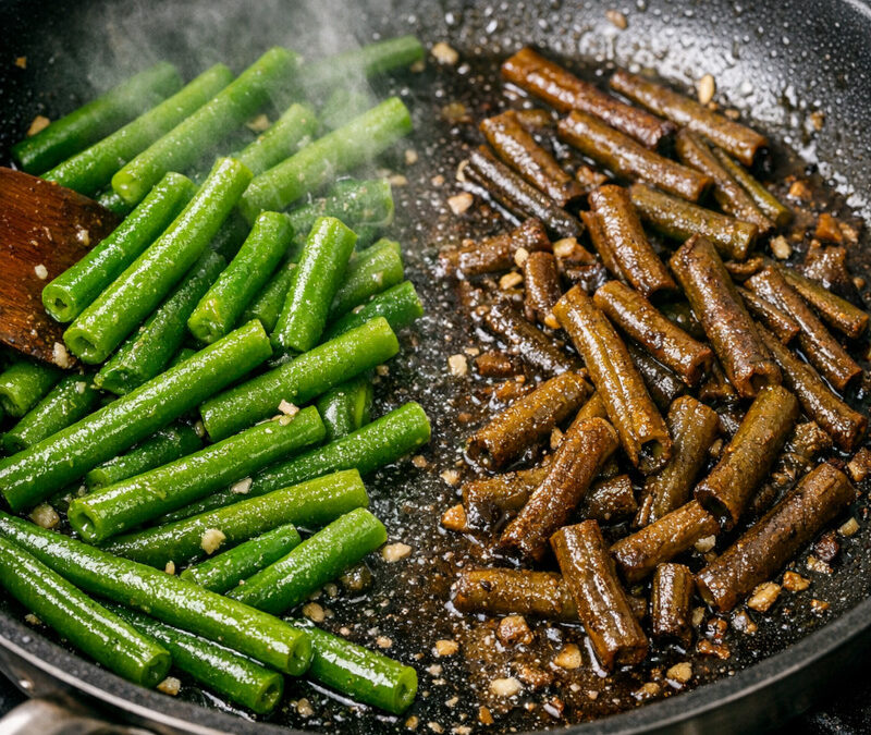C’est l’erreur la plus fréquente en cuisine domestique. Les haricots verts contiennent des acides organiques volatils (acide malique, citrique). Pendant la cuisson, ces acides sont libérés sous forme de gaz.