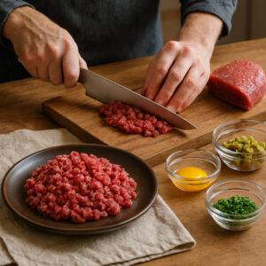 La préparation au dernier moment : Le Tartare doit être préparé et assaisonné juste avant d’être servi pour garantir sa fraîcheur et éviter l’oxydation de la viande.